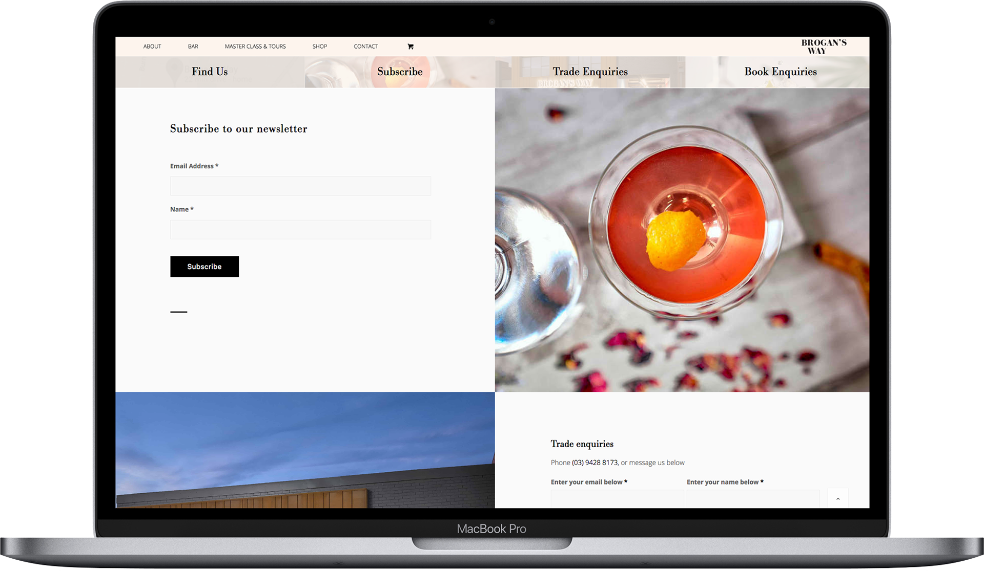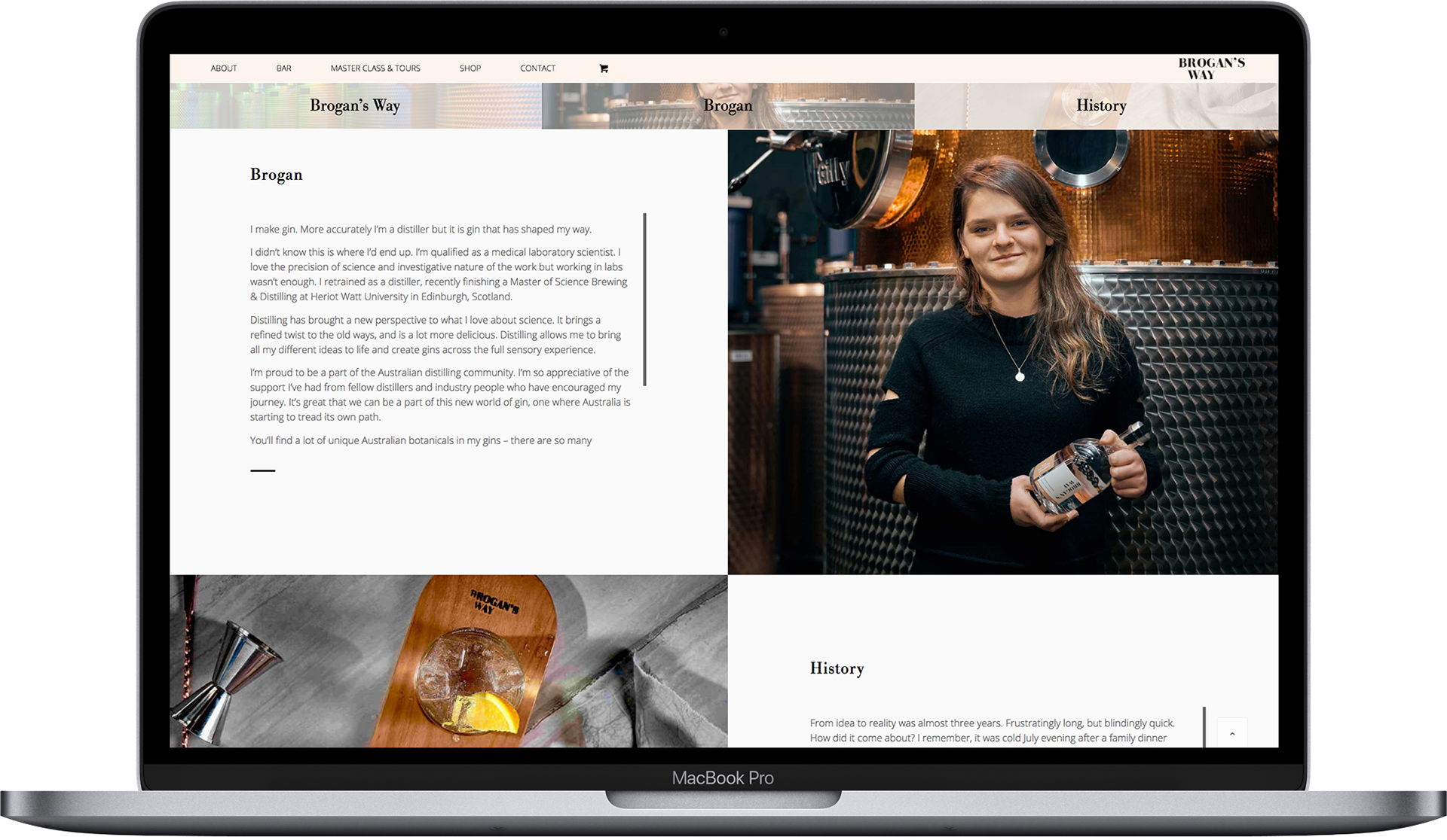 I worked with the team at Creative Factory to design a new site for craft gin distiller Brogan's Way. The site features imagery of the brand new fit-out of the Richmond distillery, with its gleaming copper pipework a feature.